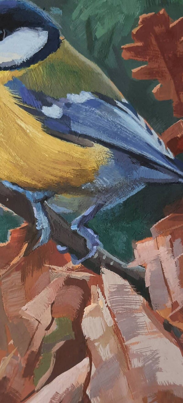 This is a portrait of a great tit and some very brittle oak leaves. It's a tribute to my favourite season, and the beauty of things passing.